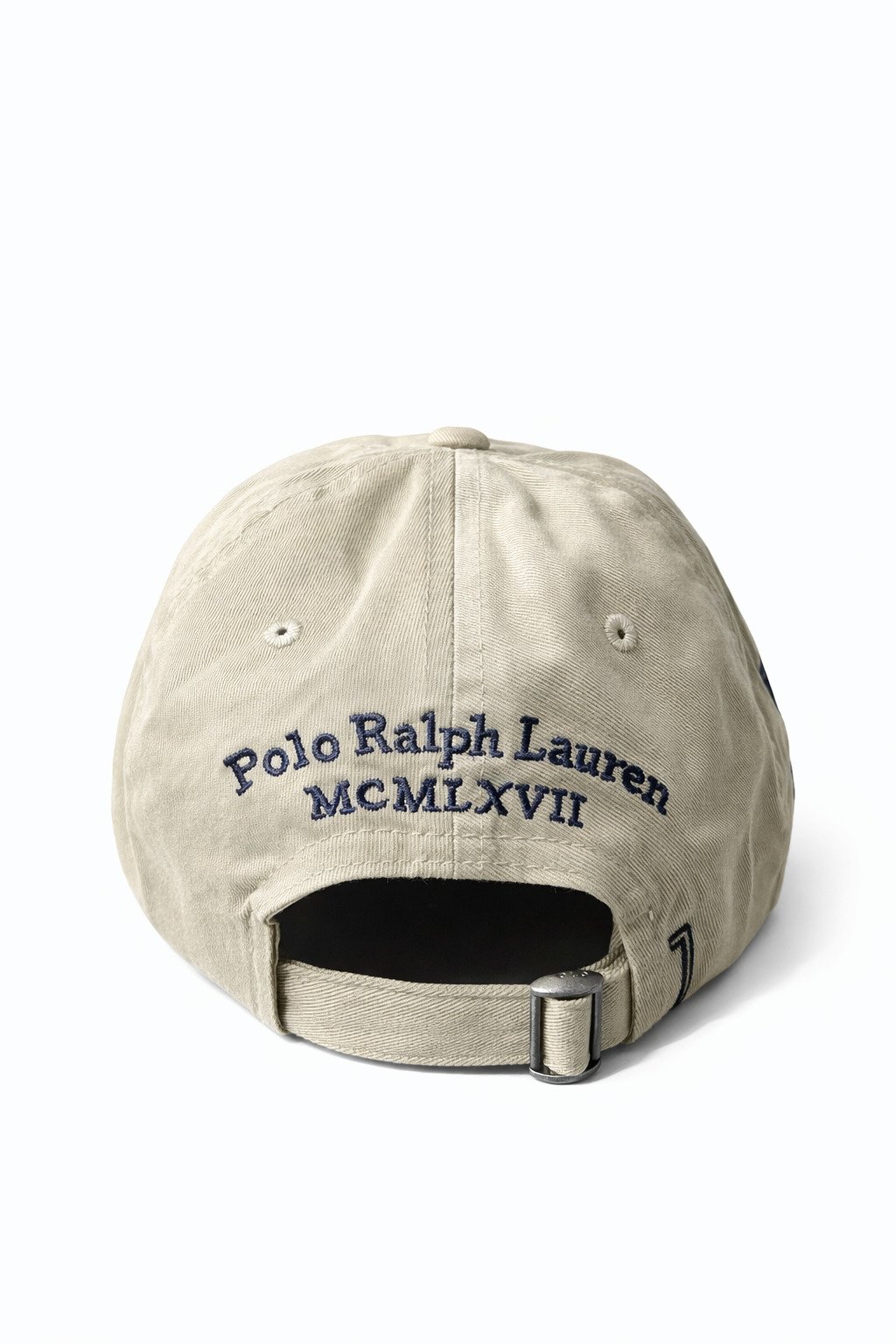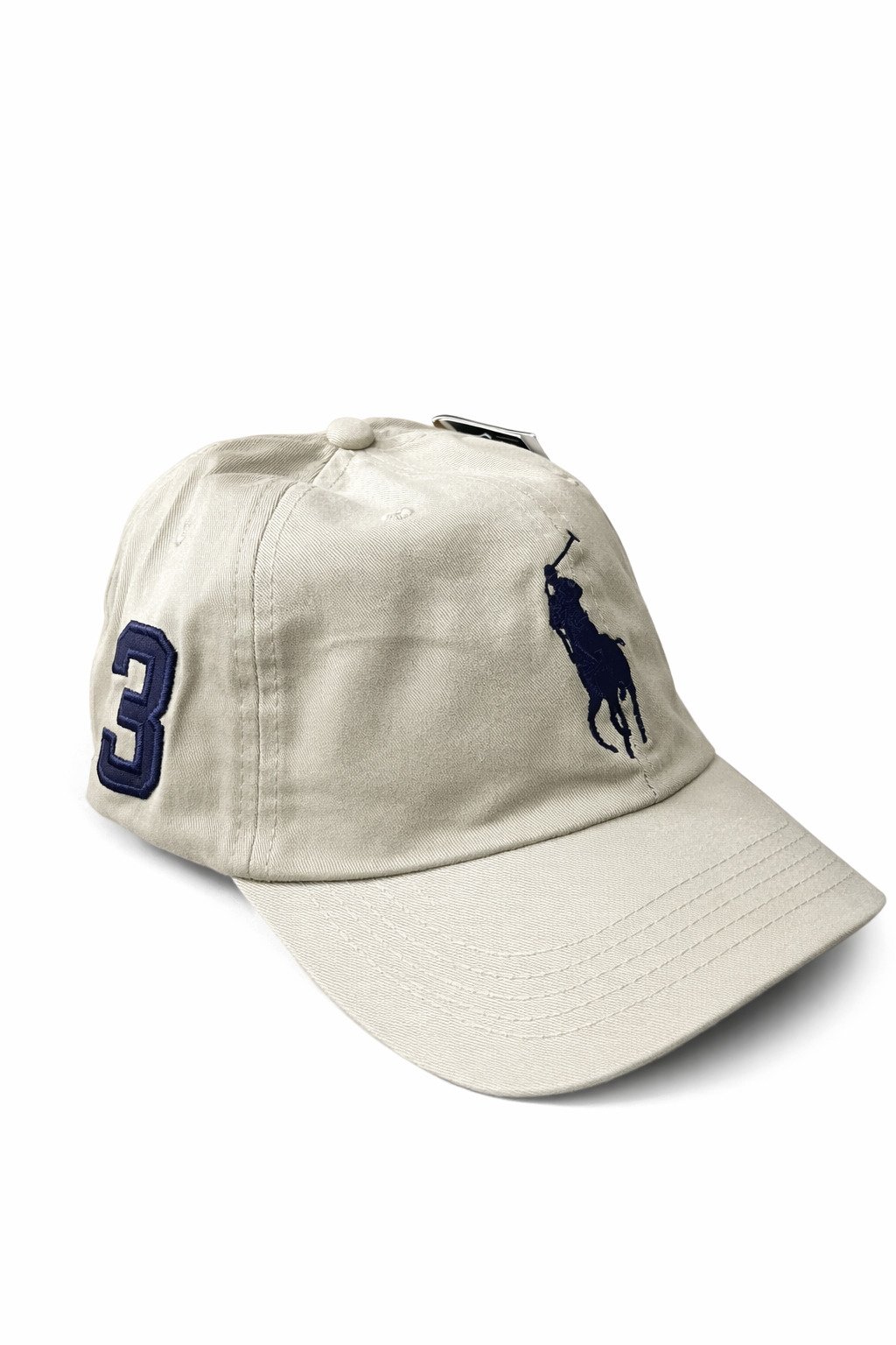 A classic beige baseball cap featuring the iconic Polo Ralph Lauren Big Pony logo embroidered on the front and a bold number “3” detail on the side. Made from premium cotton with a curved brim and adjustable fit, this cap delivers a sporty yet refined look for everyday wear.