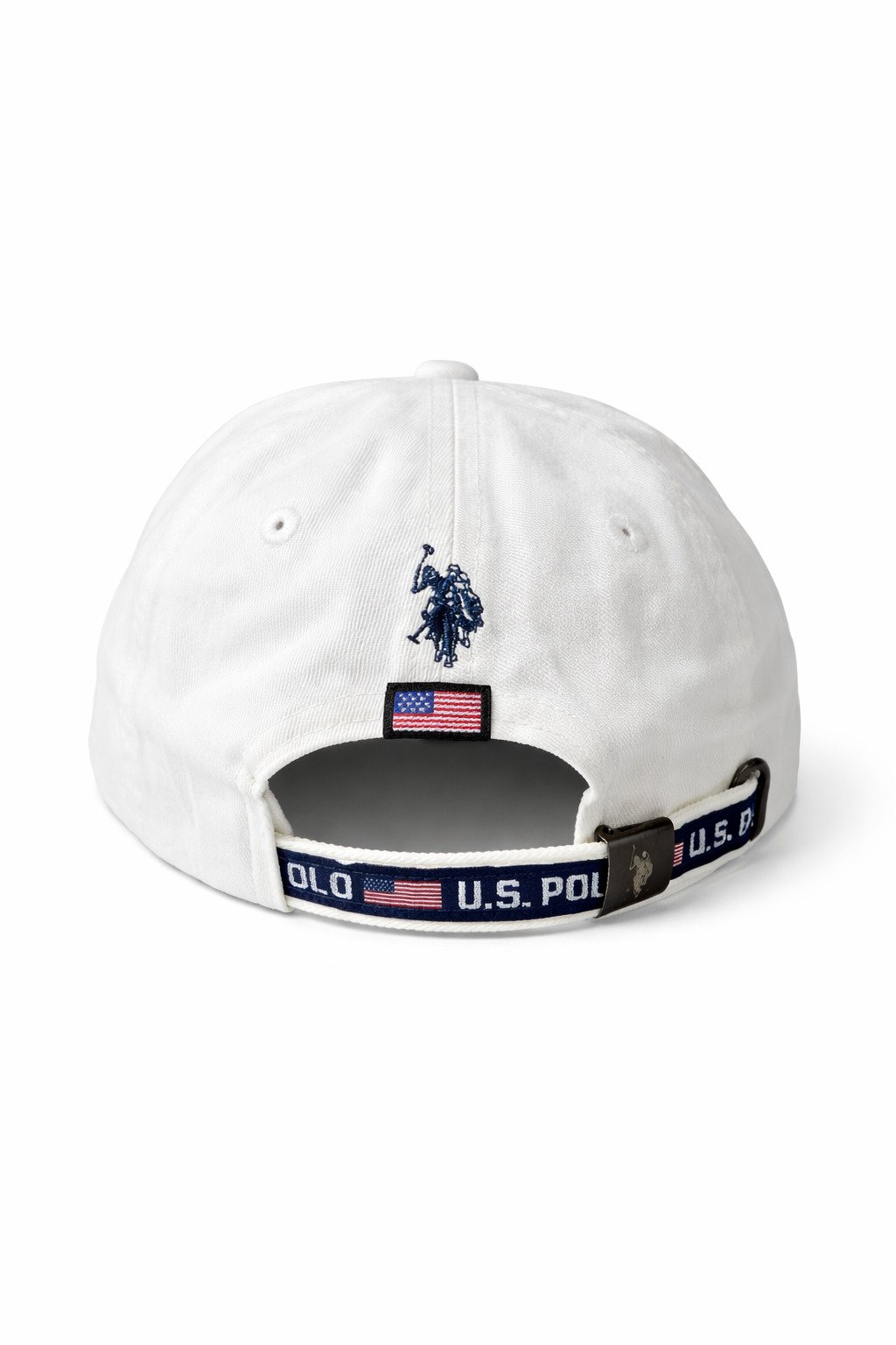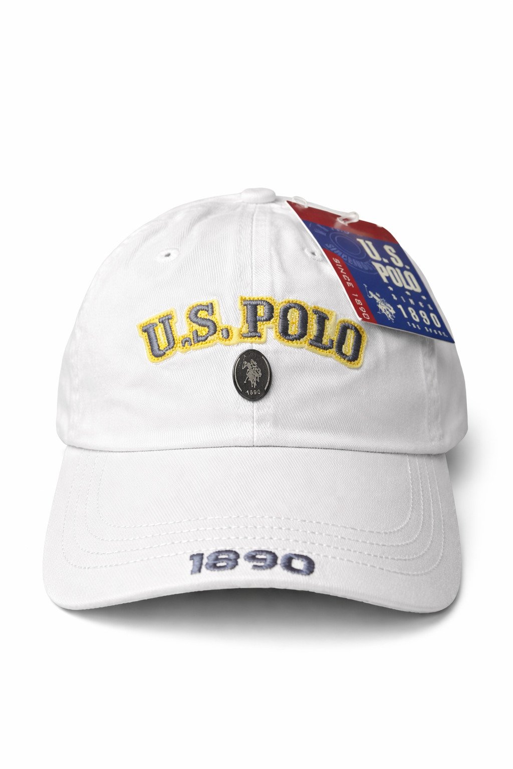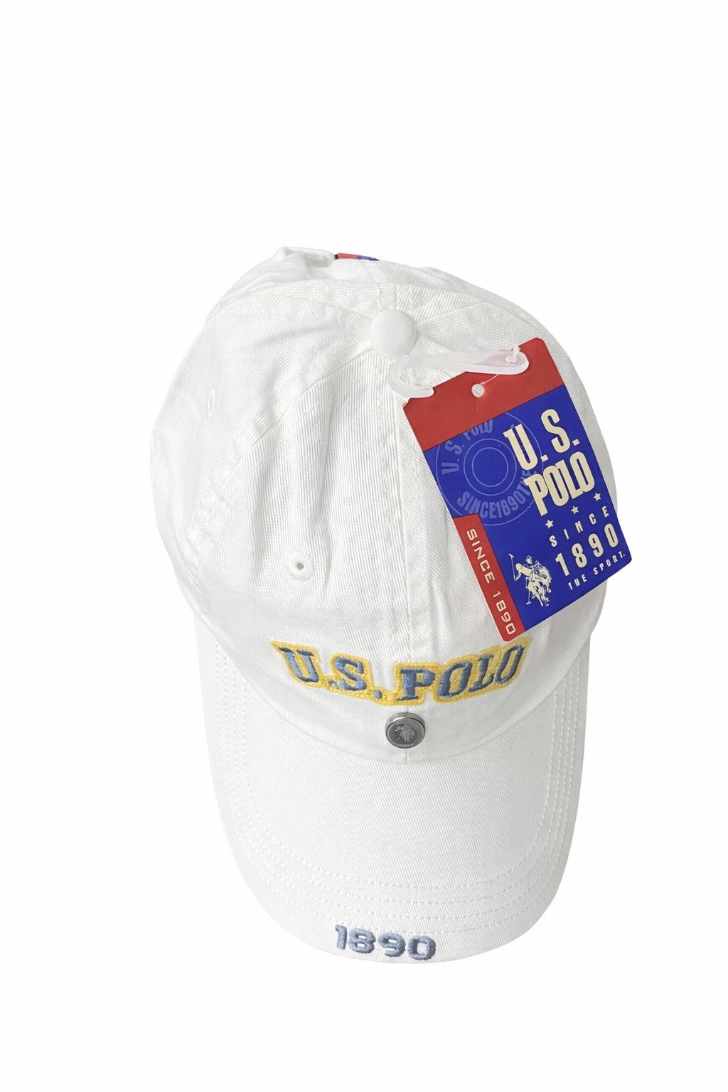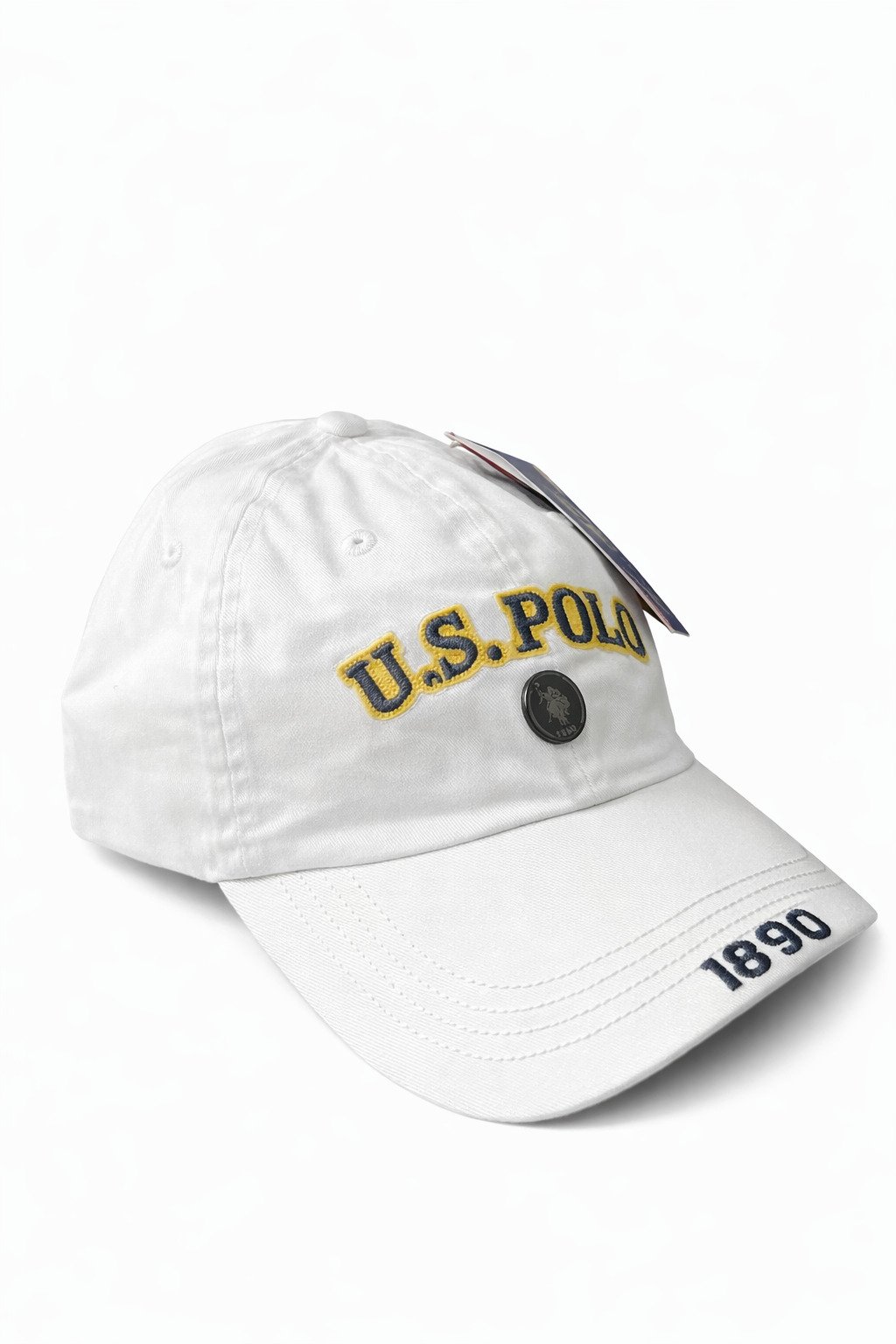 A clean white baseball cap featuring bold U.S. Polo embroidered lettering on the front with the signature 1890 detail on the brim. Made from durable cotton with a curved visor and comfortable fit, this cap delivers a fresh, sporty look perfect for everyday wear.